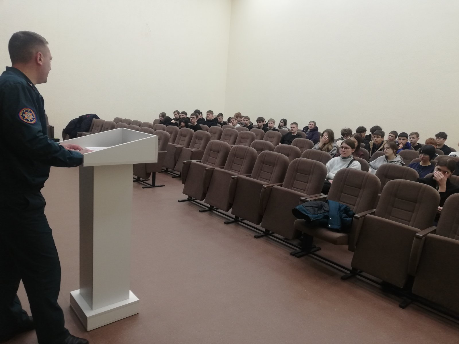 С целью предупреждения пожаров и гибели людей от них, а также обучения населения действиям по сигналу «Внимание всем!» 27 февраля в в колледже проведена объектовая тренировка по отработке действий по сигналам гражданской обороны и эвакуации из учебных корпусов, посвященная Всемирному дню гражданской обороны. Главный специалист ГФ ГСЧСиГО Копыльского РОЧС Кирьятский Н.Н. провел занятия о порядке действий по сигналу «Внимание всем!», а также при возникновении различных чрезвычайных ситуаций с учащимися групп 1 курса.
