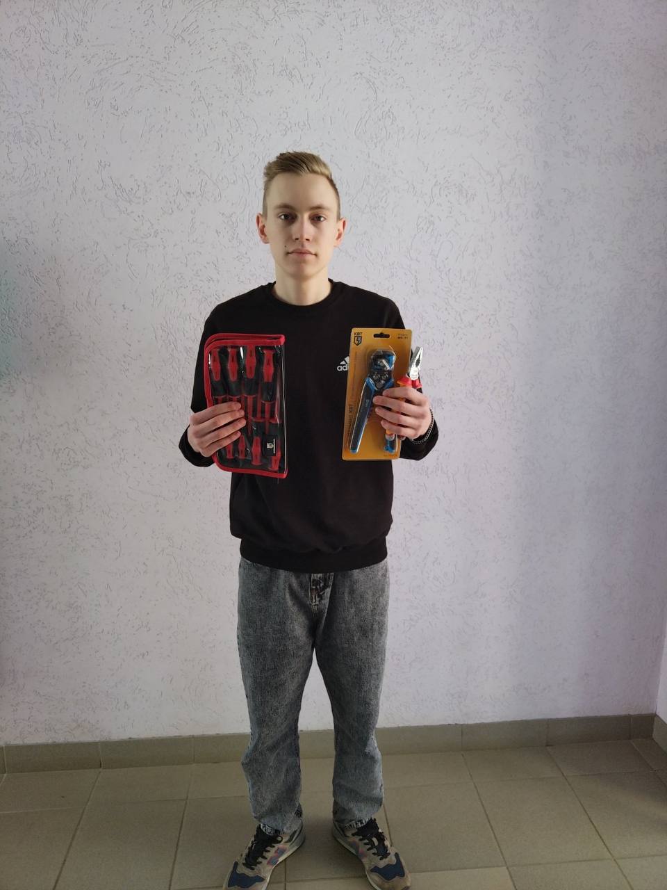Директор ЧУП «Вольт-Ампер», Плакса Дмитрий Леонидович, вручил победителю Алешкевичу А.О. памятные подарки.